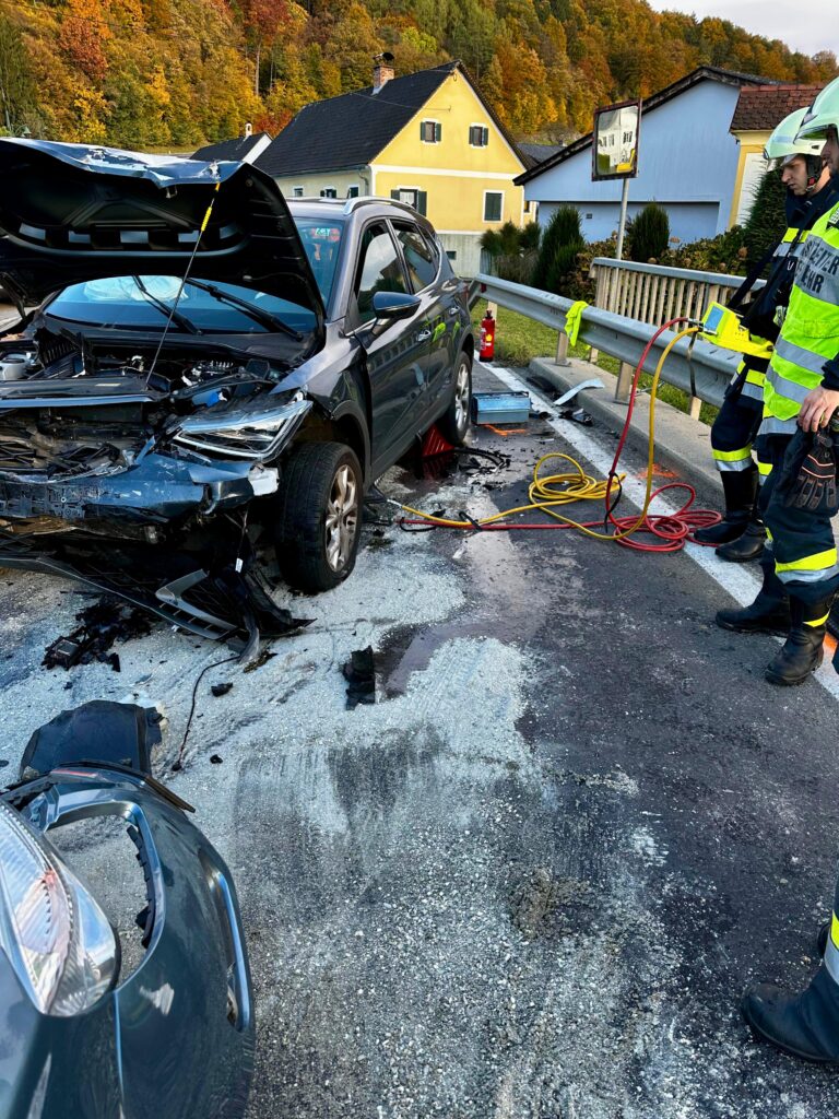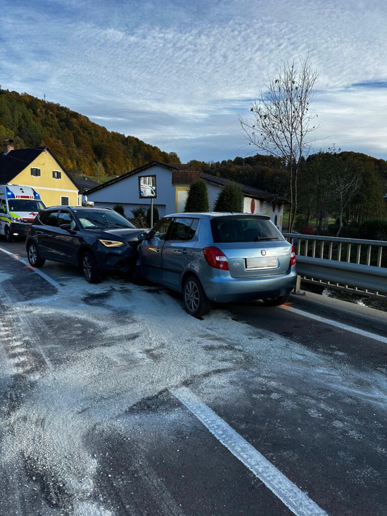Gemeinsam mit der Polizei und der Straßenverwaltung sicherten wir die Unfallstelle ab, richteten eine Umleitung ein und verbrachten die beiden Fahrzeuge gemeinsam mit dem ÖAMTC in einen sicheren Bereich.